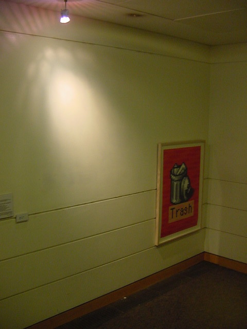 Emily Webber was inspired by the geography of the space, a corridor that snaked its way through various departments. She explored ideas around corridors of power, labyrinths and infinity by documenting a previous exhibition in the space and then manipulating the images to create a sense of an endless corridor with no beginning or end.