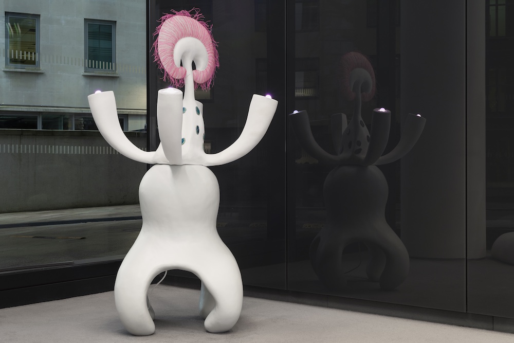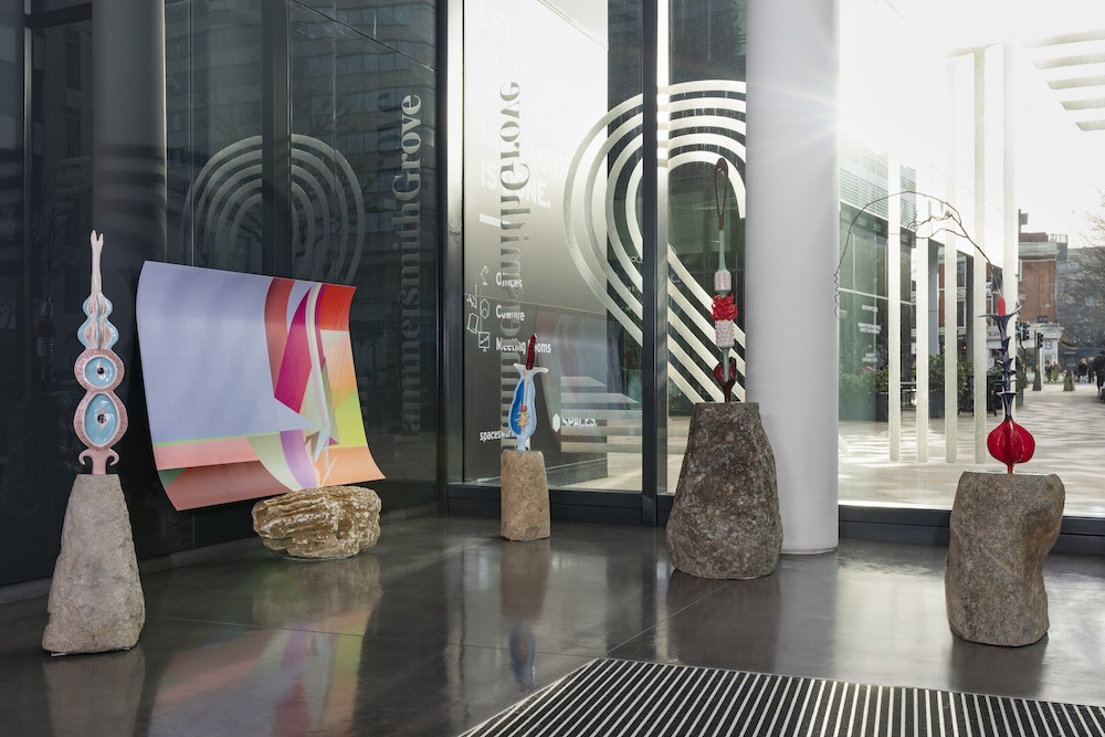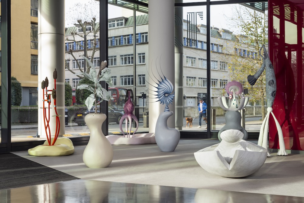 Public works include Memorial to a Memorial temporarily replacing Barbara Hepworth’s Single Form in Battersea Park, commissioned by Wandsworth Council in 2022, and this year’s ANANAS, funded by Arts Council England, for Fulham Palace to commemorate the 50th anniversary of opening its house and gardens to the public, later taking up its place in Holland Park as part of KCAW.